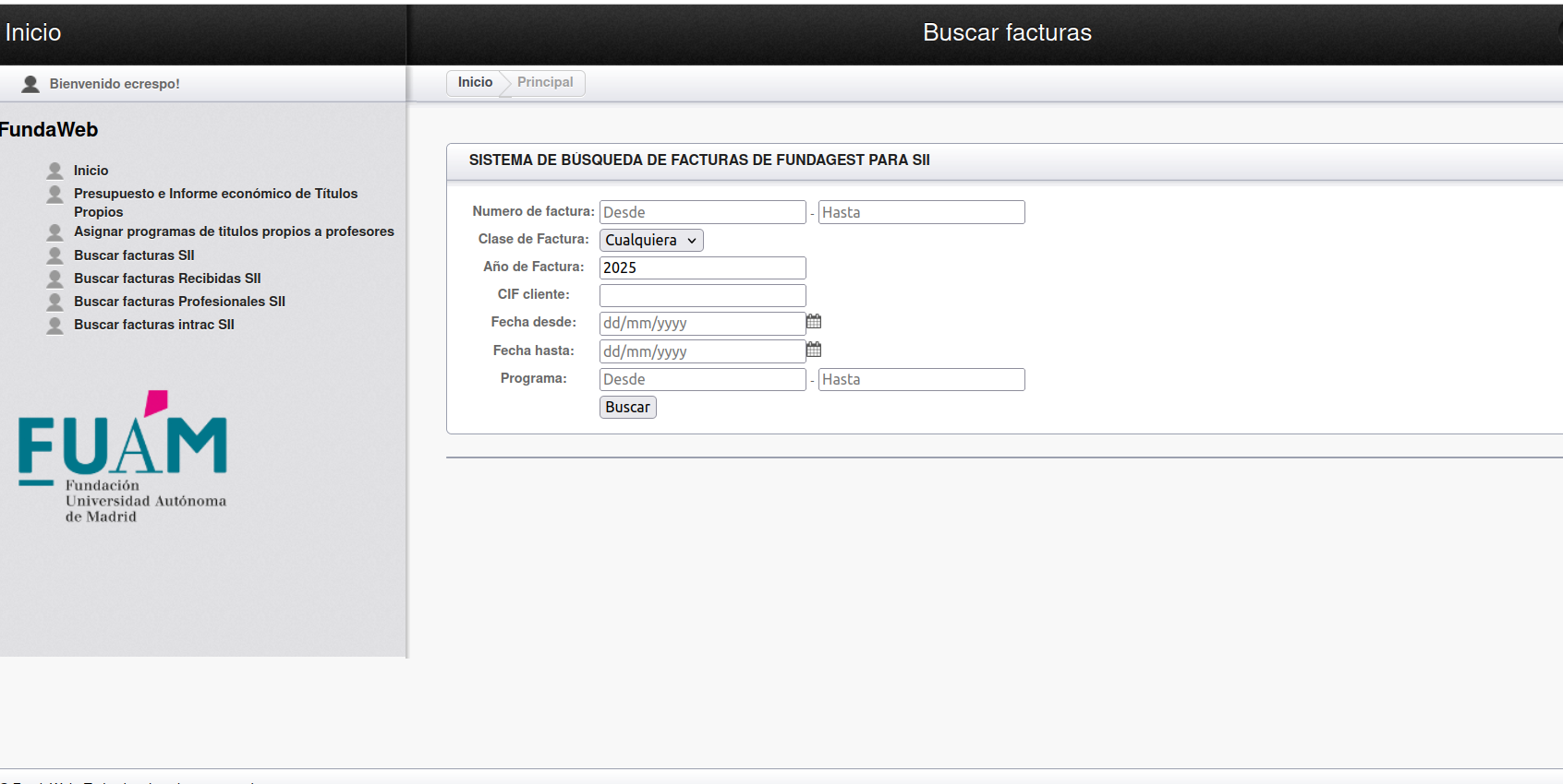 solicito el cambio del ejercicio 2025 al ejercicio 2026 como campo fijo en Fundaweb para envío de facturas en el SII